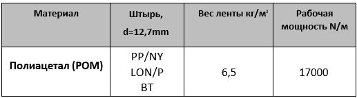 Поверхность: Flat Top (Гладкая); Степень открытости: 0%; Материал/цвет: Полиацетал (РОМ)— темно-серый; Стандартная ширина модуля: 170,85 мм; Стандартная ширина ленты: 170*N; Нестандартная ширина ленты: По запросу; Параметры ленты: