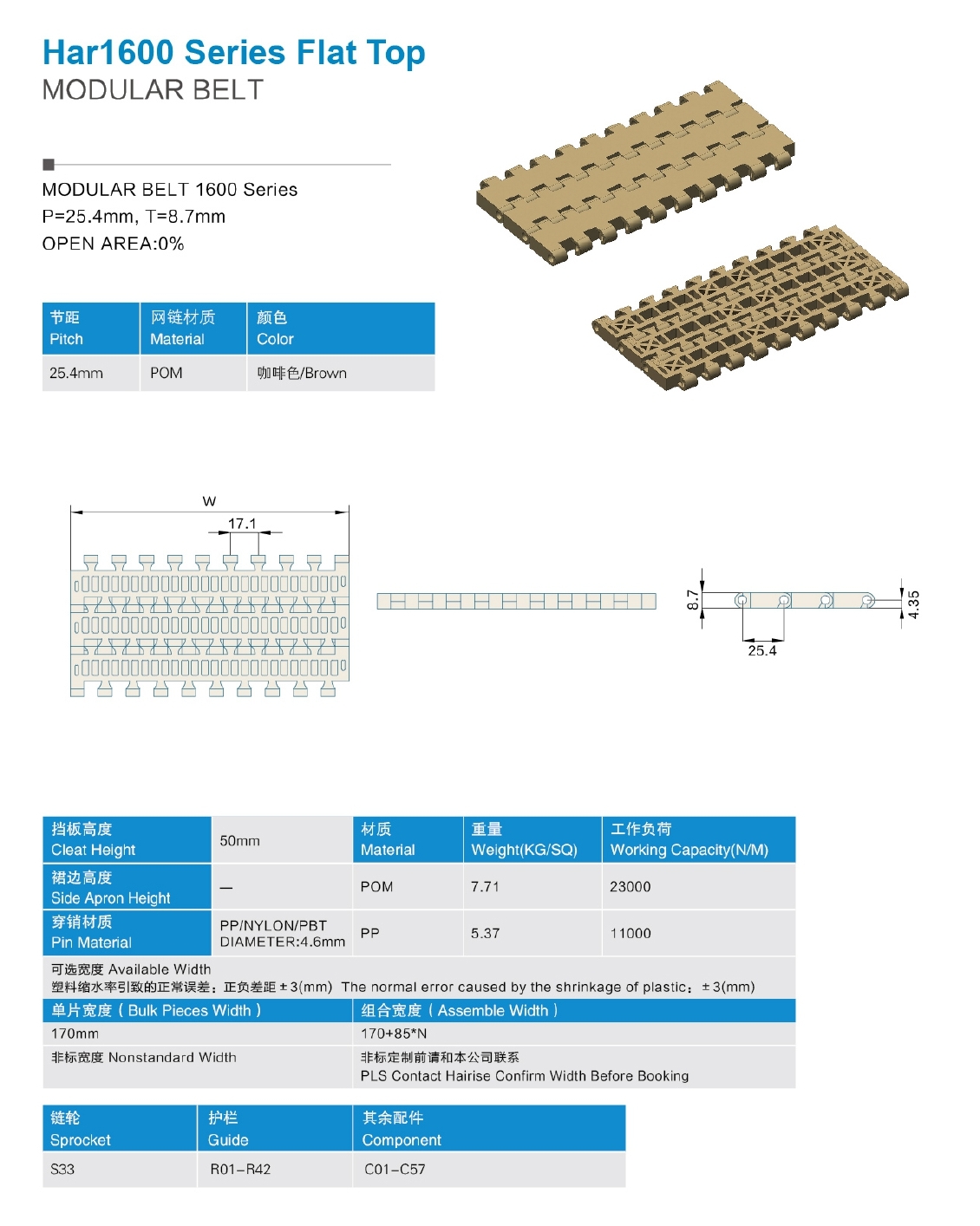 Модульная лента Har1600 Series l Flat Top l Hairise