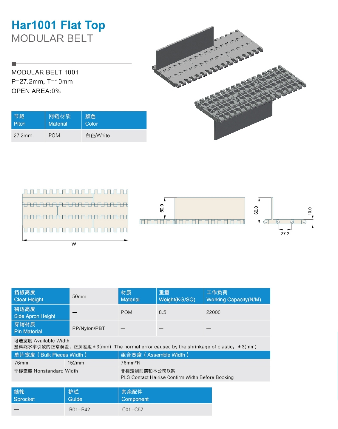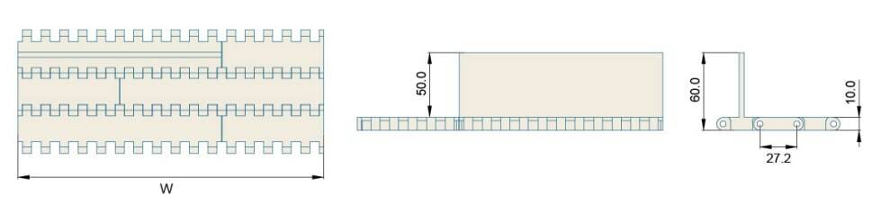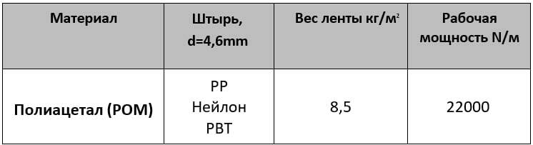 Поверхность: Flat Top (Гладкая); Степень открытости: 0%; Материал/цвет: Полиацетал (РОМ)— Белый Стандартная ширина модуля: 76мм; 152мм; 76мм; Стандартная ширина ленты: 76мм+152мм+76мм*N; Нестандартная ширина ленты: По запросу; Параметры ленты:
