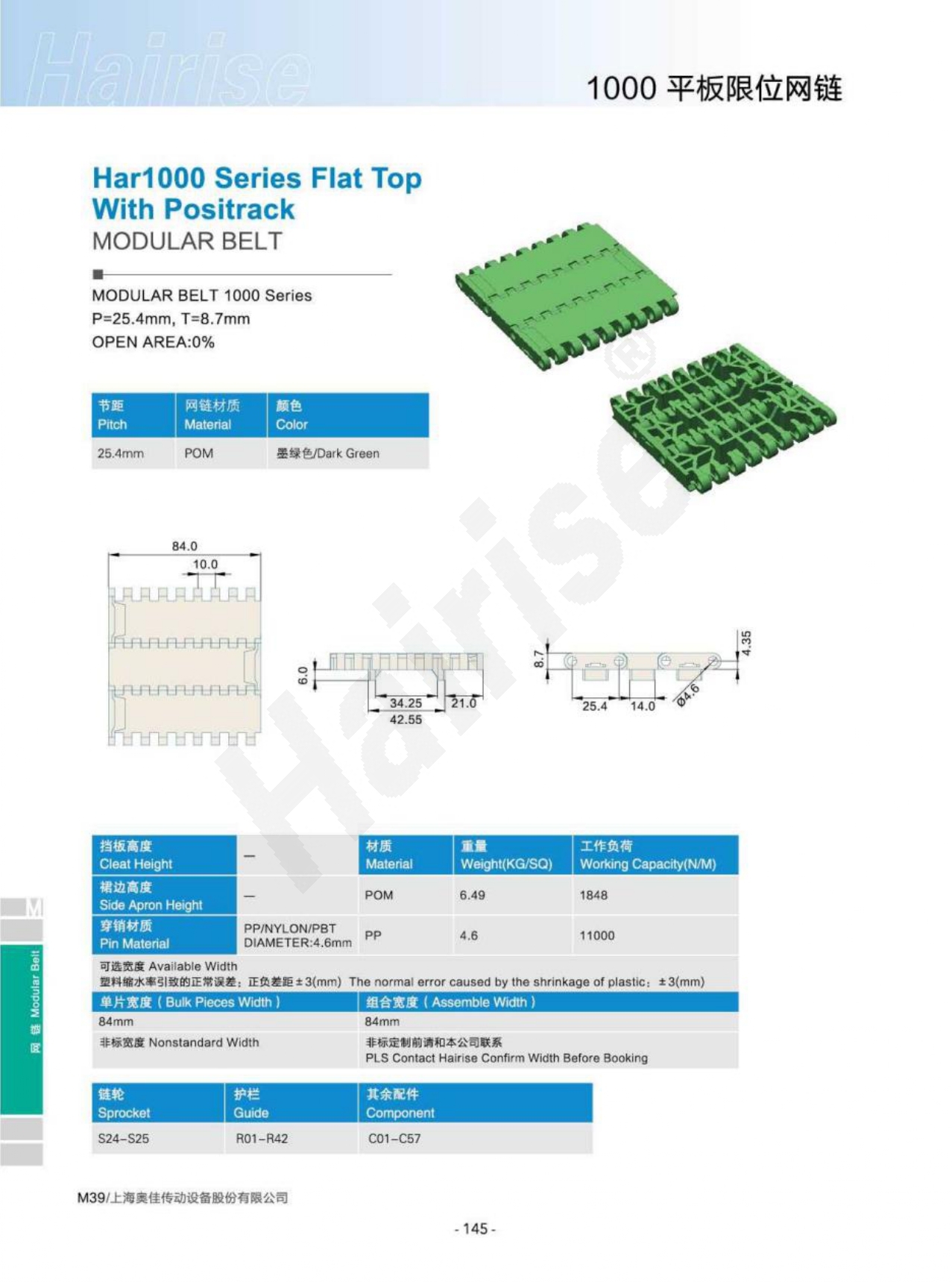 Аналог модульной ленты LTDP 1000 XLG 84 | Flat Top | Rexnord