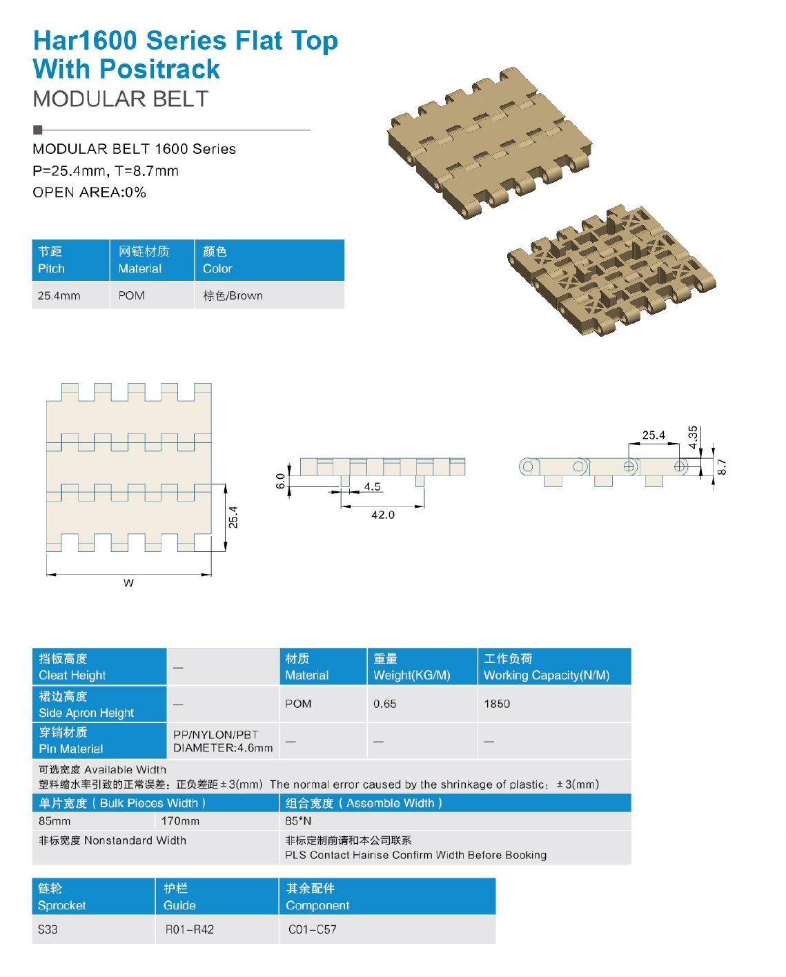 Модульная лента Har1600 Series l Flat Top With Positrack l Hairise
