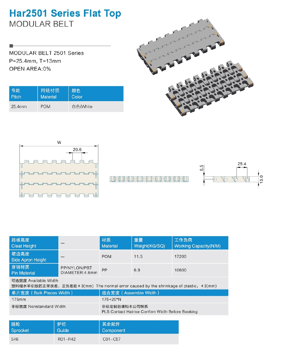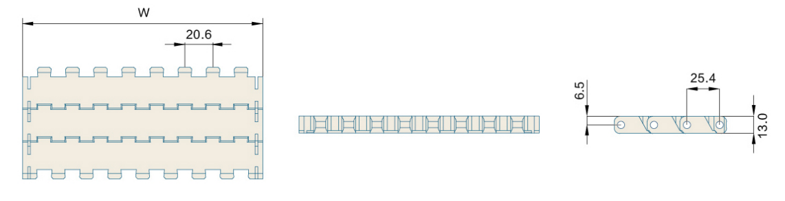 Поверхность: Flat Top (Гладкая); Степень открытости: 0%; Материал/цвет: Полиацетал (РОМ)— белый; Ширина модуля: 175мм; Стандартная ширина ленты:175+20*N Ширина ленты: по запросу; Параметры ленты: