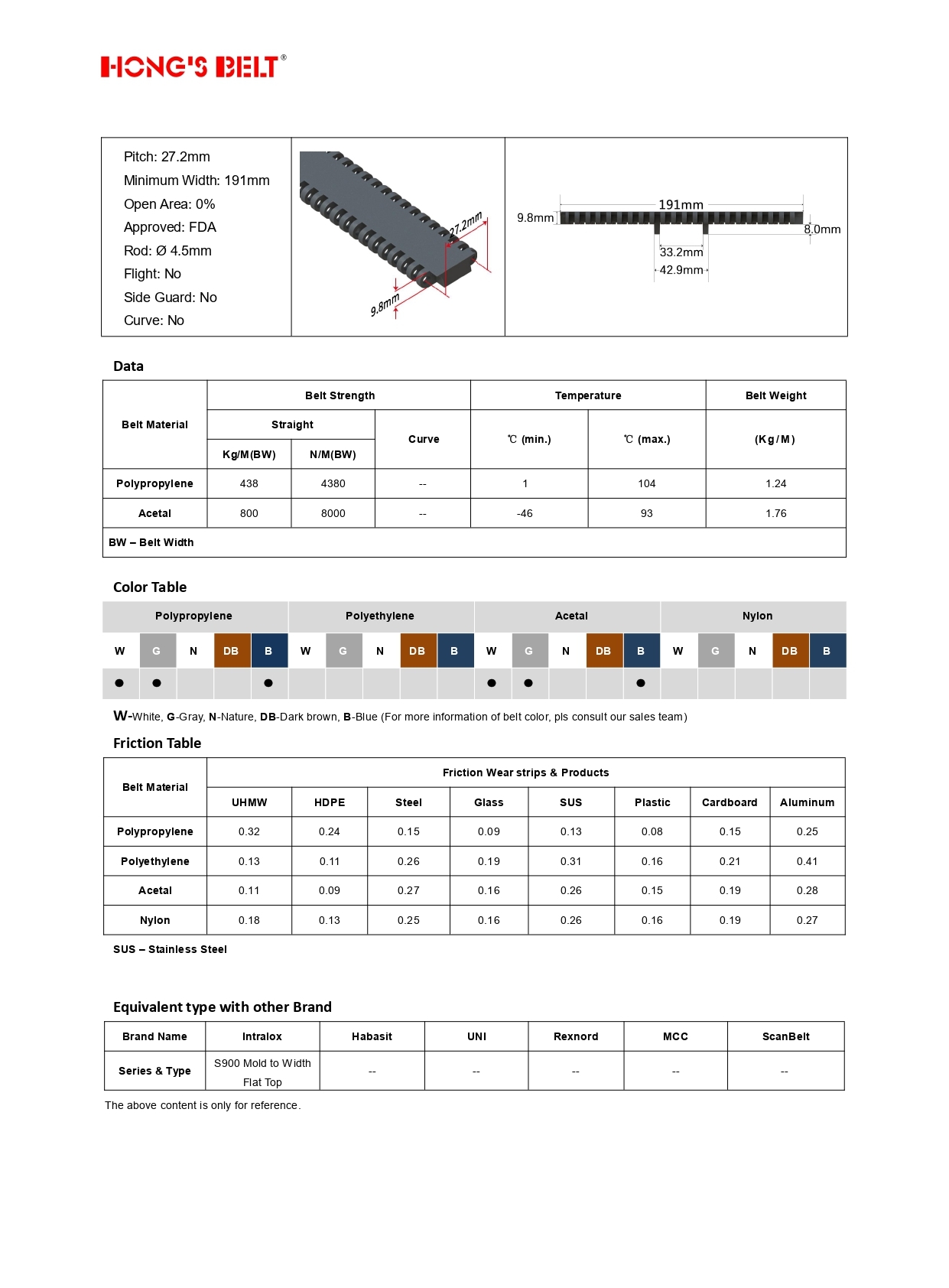 Стандартная ширина ленты: 191 мм;