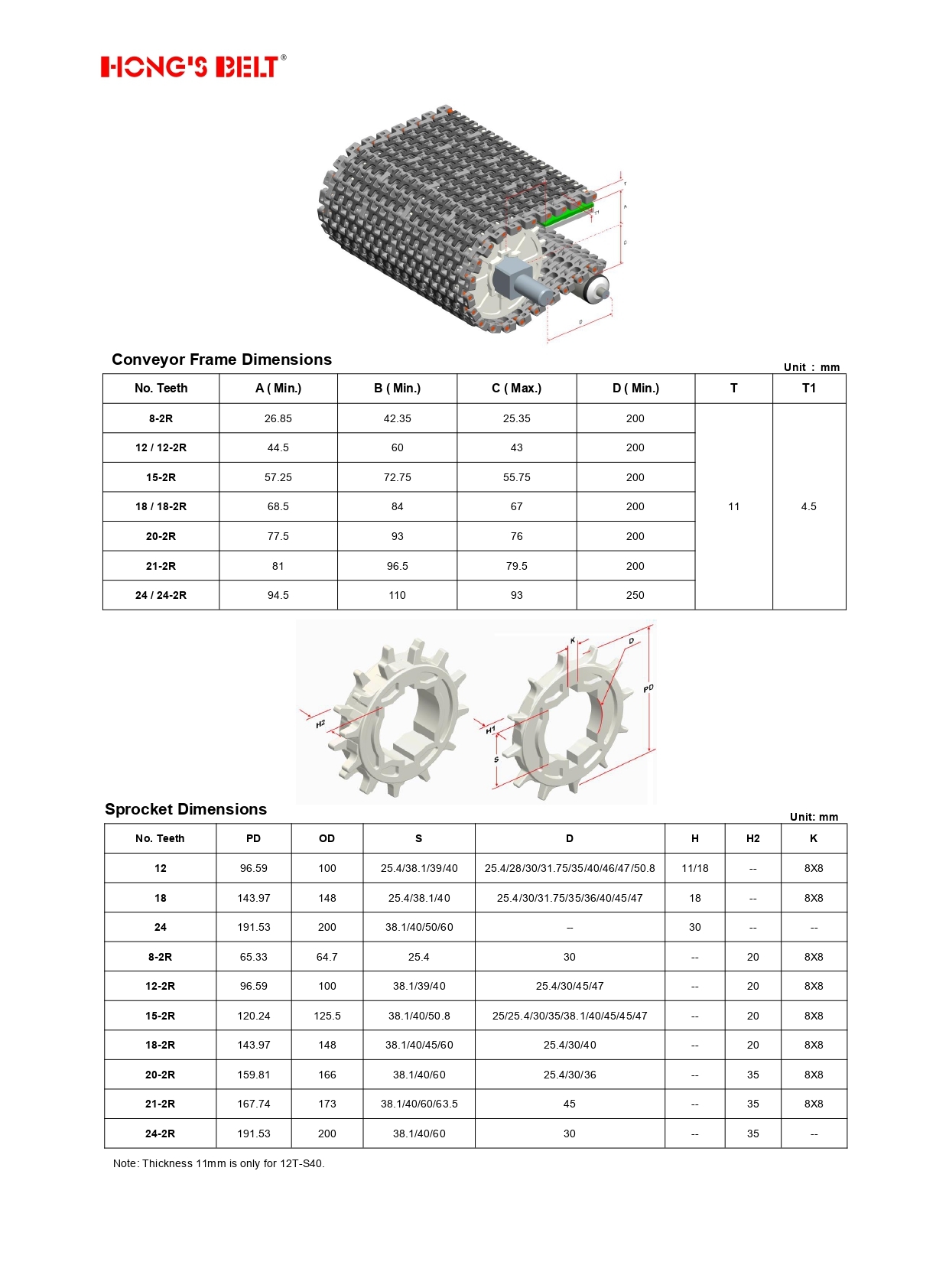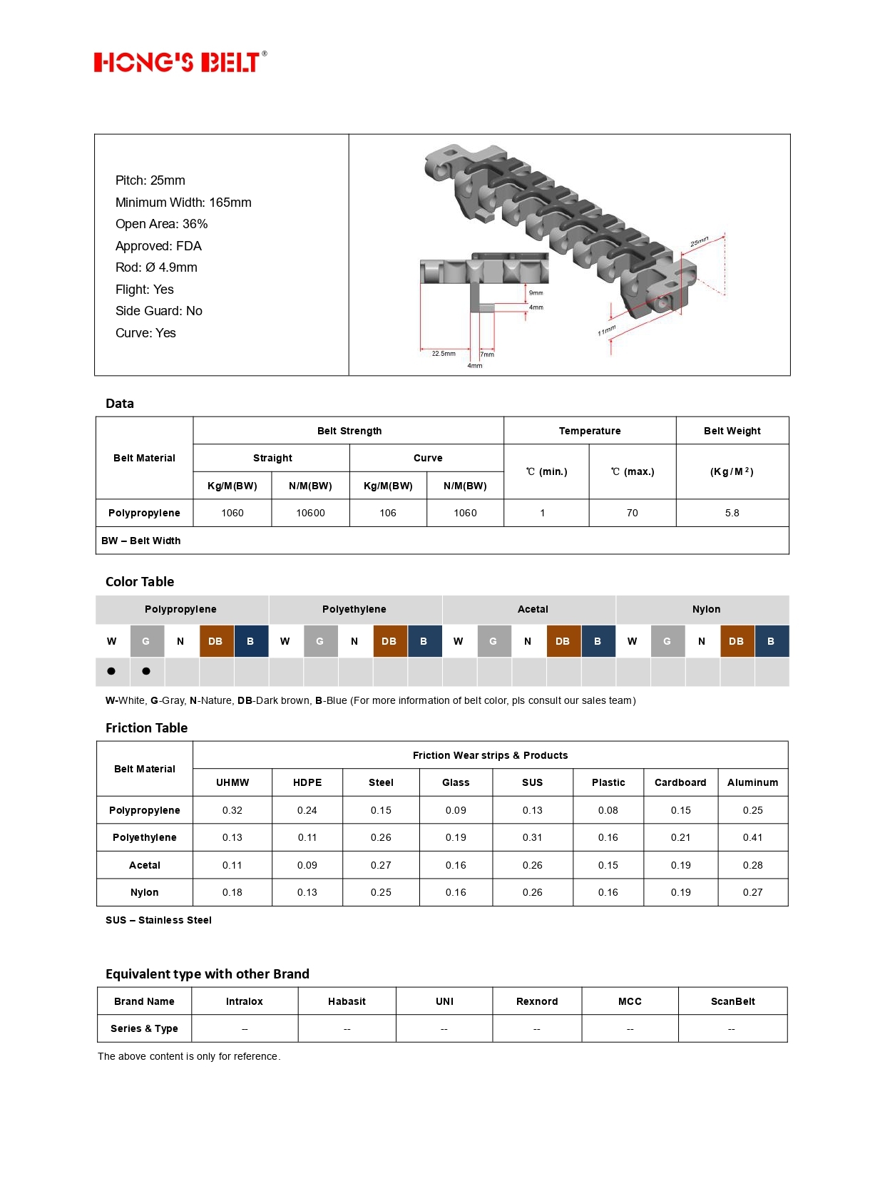 Модульная лента HS-500B-EL-GB l Rubber Top l HONGSBELT