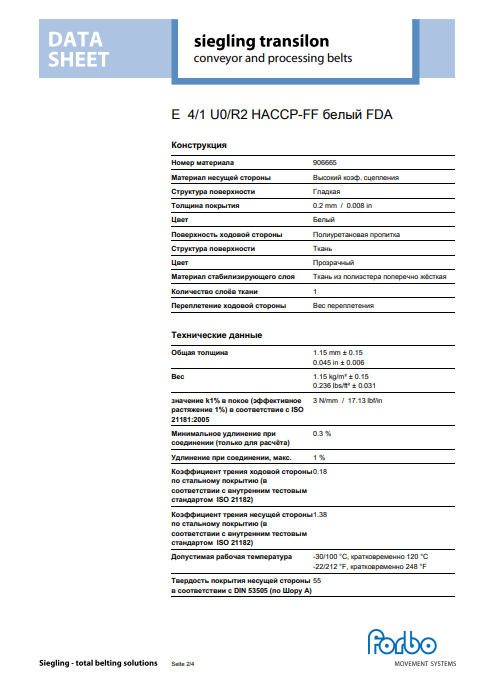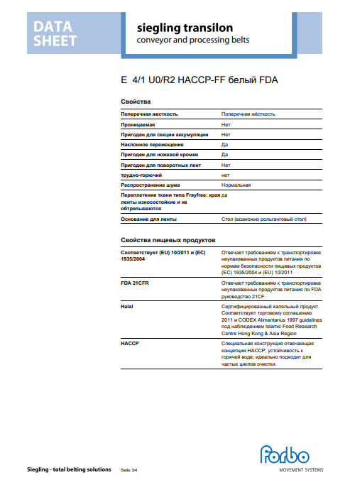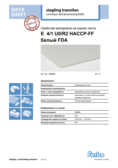 Маркировка: E 4/1 U0/R2 HACCP-FF