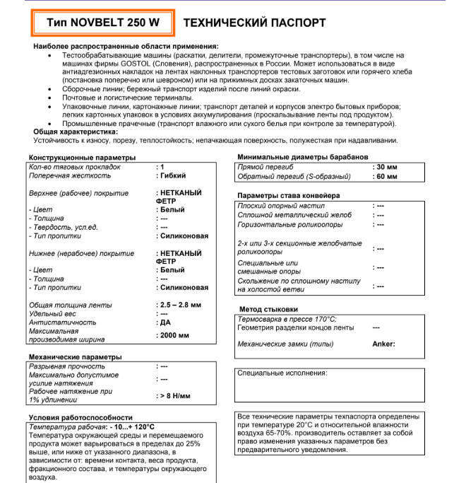 Маркировка: NOVBELT 250 W