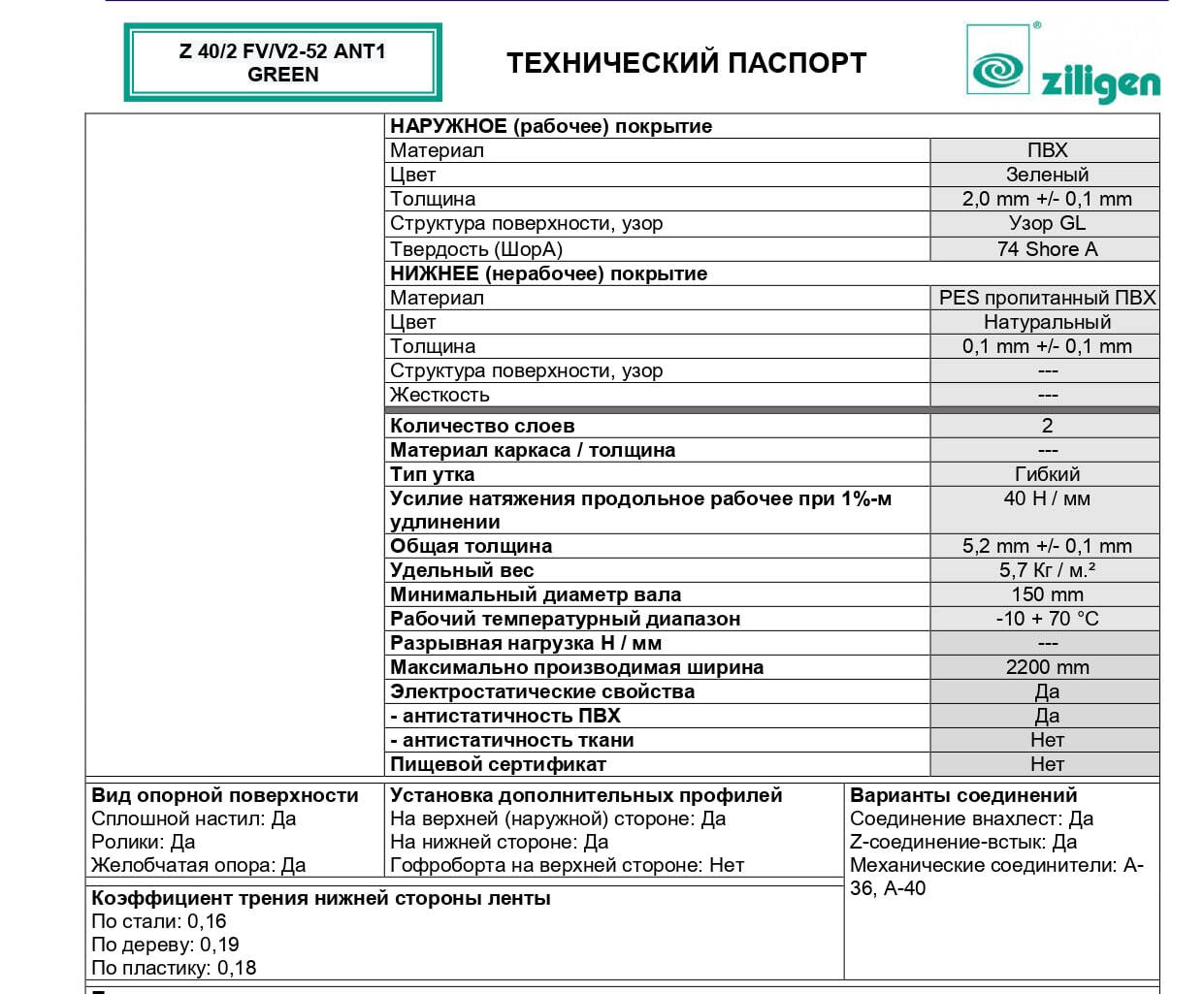 Маркировка: Z 40/2 FV/V2-52 ANT1 GREEN