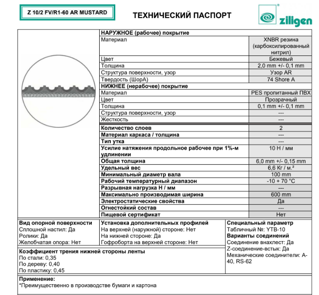 Маркировка: Z 10/2 FV/R1-60 AR MUSTARD