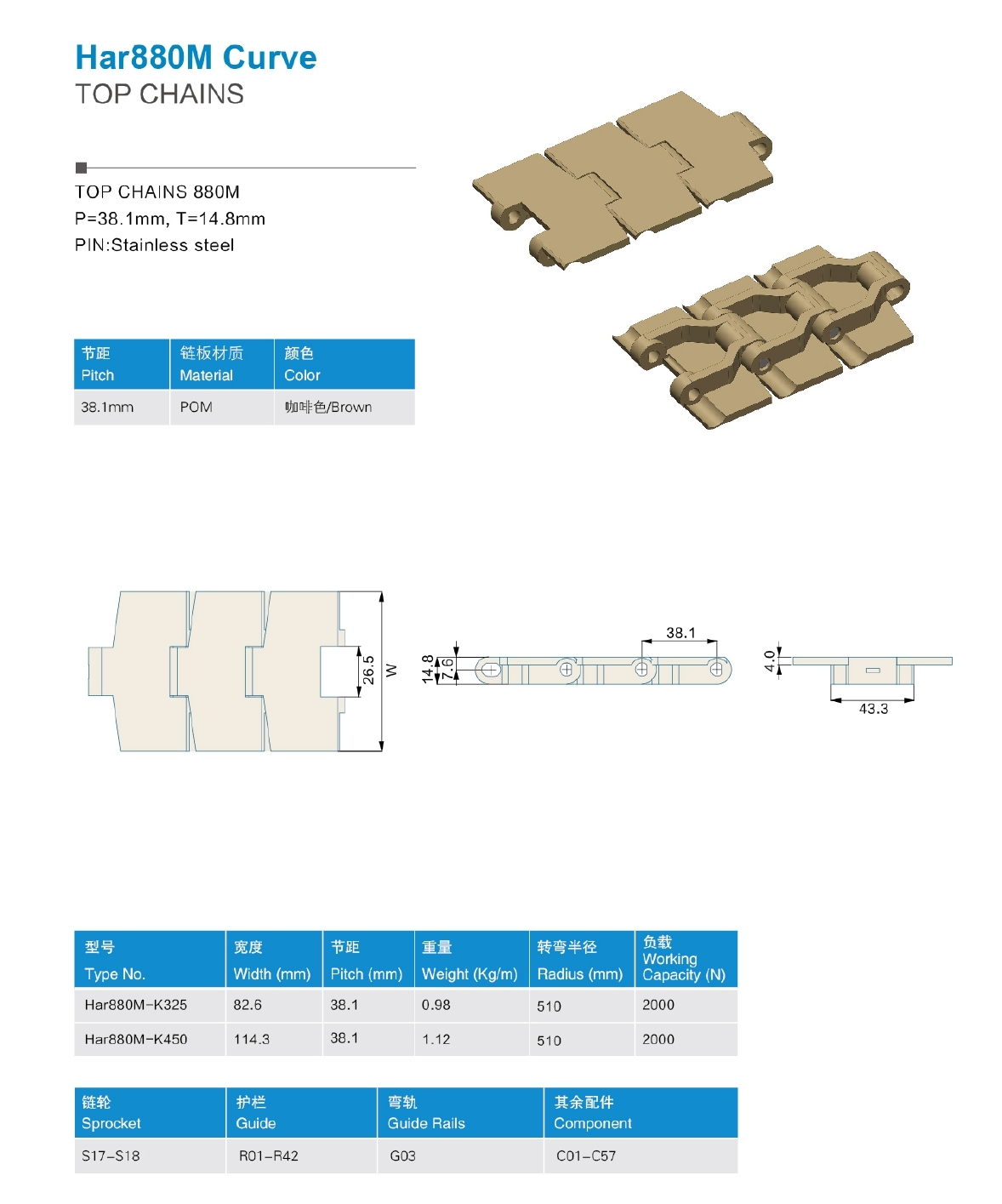 Пластинчатая цепь Har880M Series Curve l Hairise
