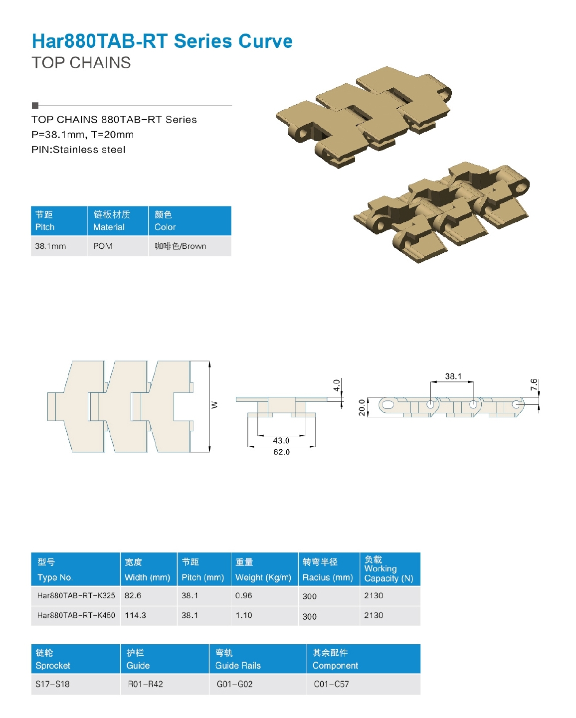 Пластинчатая цепь Har880TAB-RT Series Curve l Hairise
