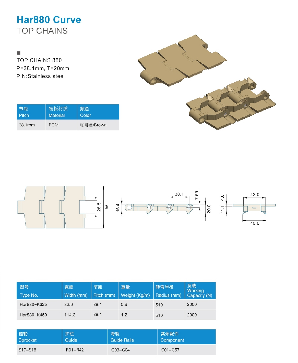 Пластинчатая цепь Har880 Series Curverl Hairise
